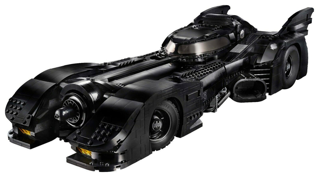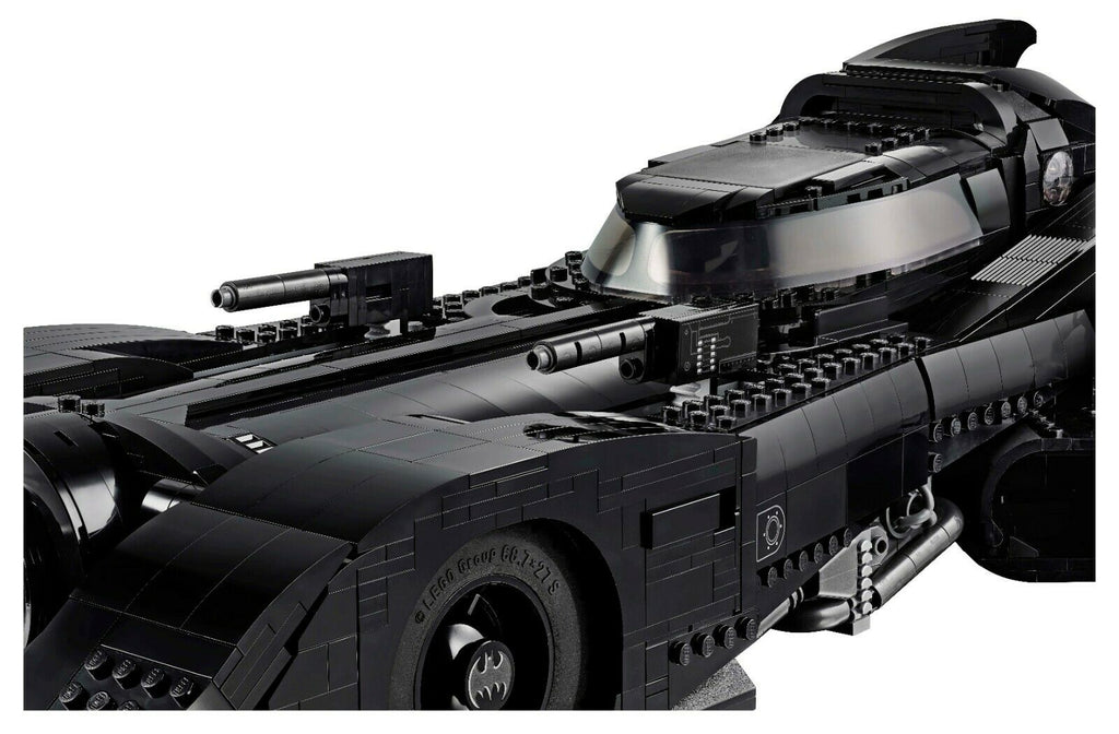 - This LEGO® brick version of the 1989 Batmobile™ features a slide-open cockpit with a new-for-November-2019 wraparound windshield element, 2 minifigure seats, a steering wheel, stick shift and dashboard stickers, 2 hidden, non-shooting machine guns under the bonnet with a pop-up function activated by rotating the turbine exhaust, 2 decorative grappling hooks, wheel trims with the Bat logo and specially designed tyres for the front wheels, batwings and other iconic design details.